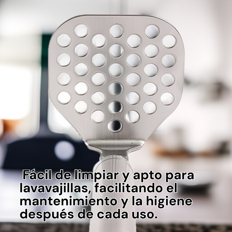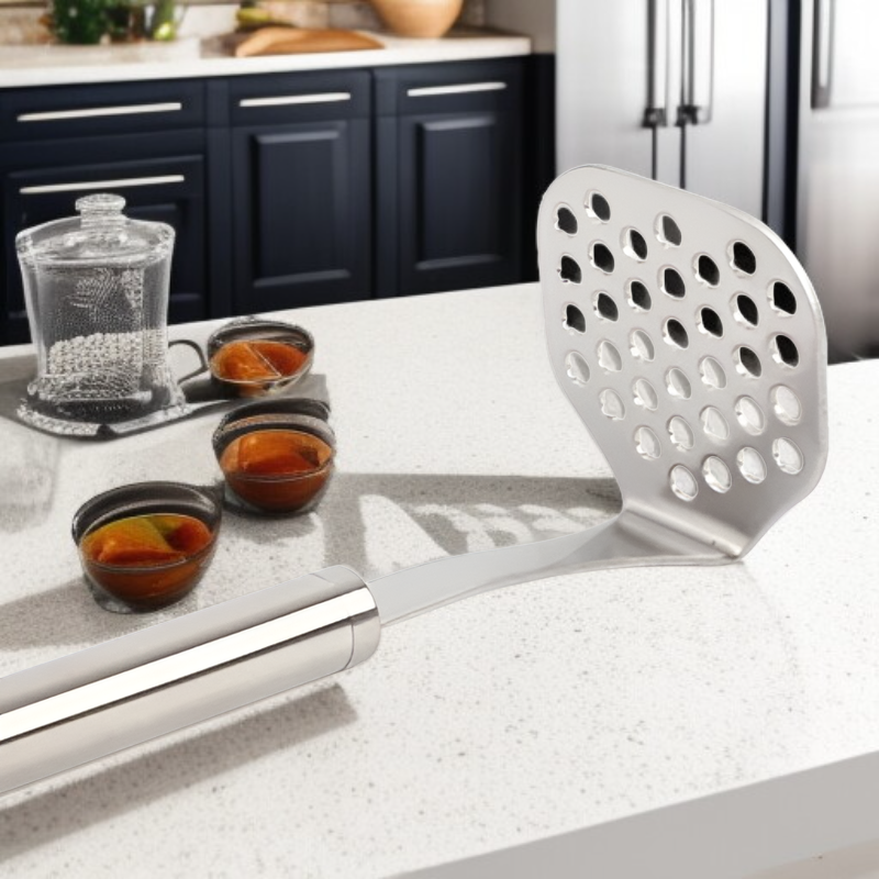 ● El prensador de patatas de acero inoxidable grande permite triturar patatas y otros alimentos fácilmente, ahorrando tiempo y esfuerzo en la cocina. ● Fabricado con materiales resistentes y duraderos, garantiza un uso prolongado sin deformaciones ni corrosión, ideal para uso doméstico y profesional. ● Su diseño ergonómico proporciona un agarre cómodo y seguro, evitando molestias en las manos durante el proceso de prensado. ● Fácil de limpiar y apto para lavavajillas, facilitando el mantenimiento y la higiene después de cada uso. ● Perfecto para preparar puré de patatas suave y homogéneo, así como para triturar otros vegetales y frutas para recetas saludables y deliciosas.
