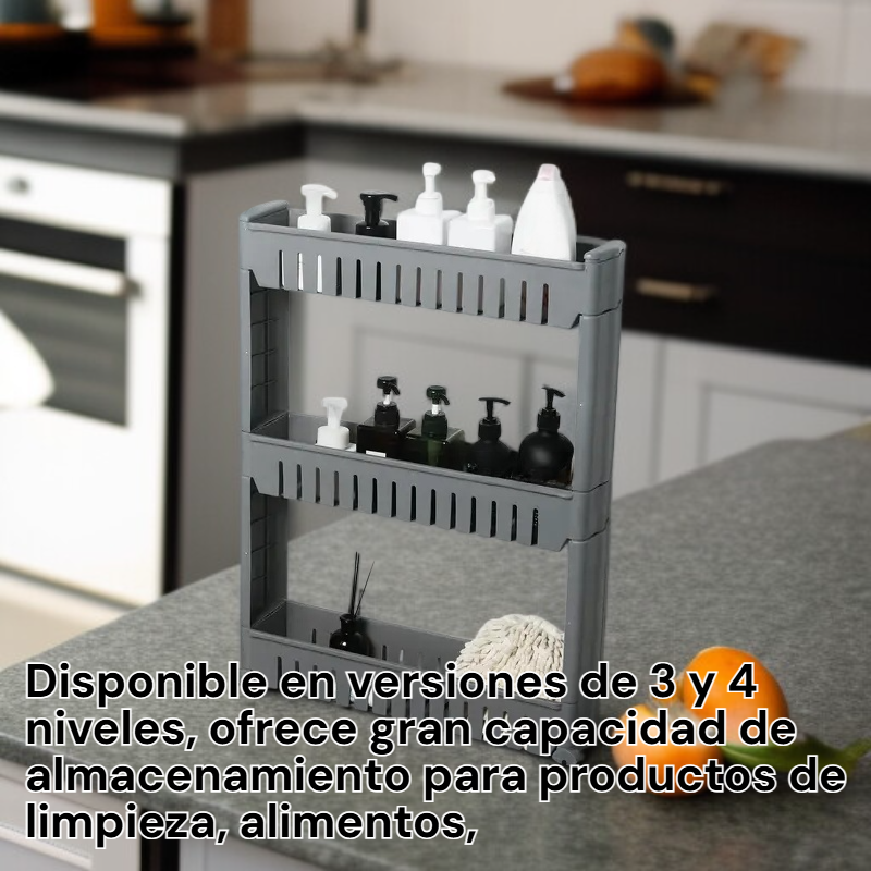 ● Disponible en versiones de 3 y 4 niveles, ofrece gran capacidad de almacenamiento para productos de limpieza, alimentos, accesorios de baño y más, manteniendo todo al alcance y ordenado.